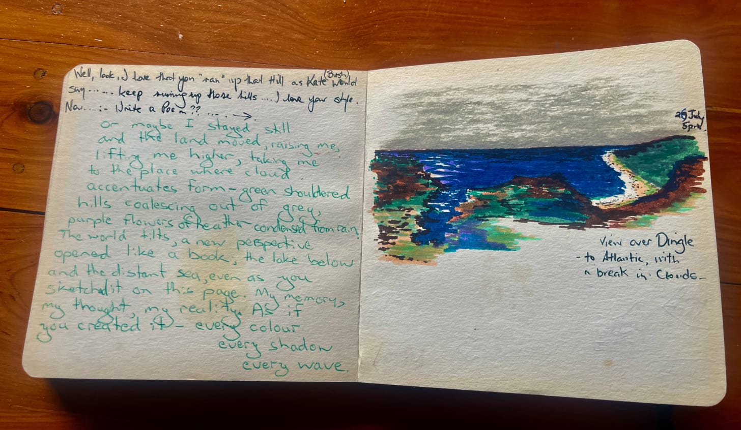 The words below are transcribed from my journal - jotted down in the plane as we left Dublin, the fierce force of the engines tearing us away into thick banks of cloud which parted briefly before we cleared the coast…..