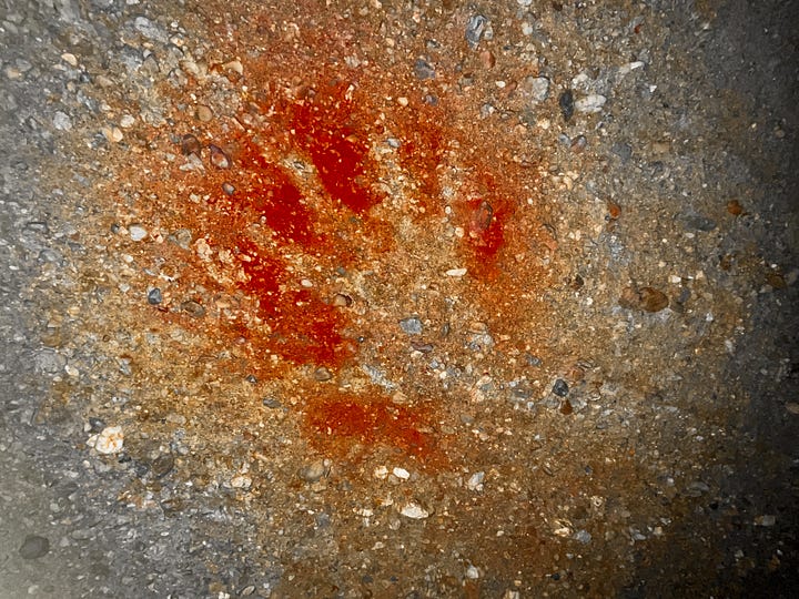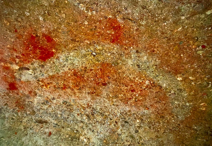 I am walking through someone’s home - their handprint outlined in red ochre on the wall, the stencil of their throwing stick beside it. It is a hand I could have held.
