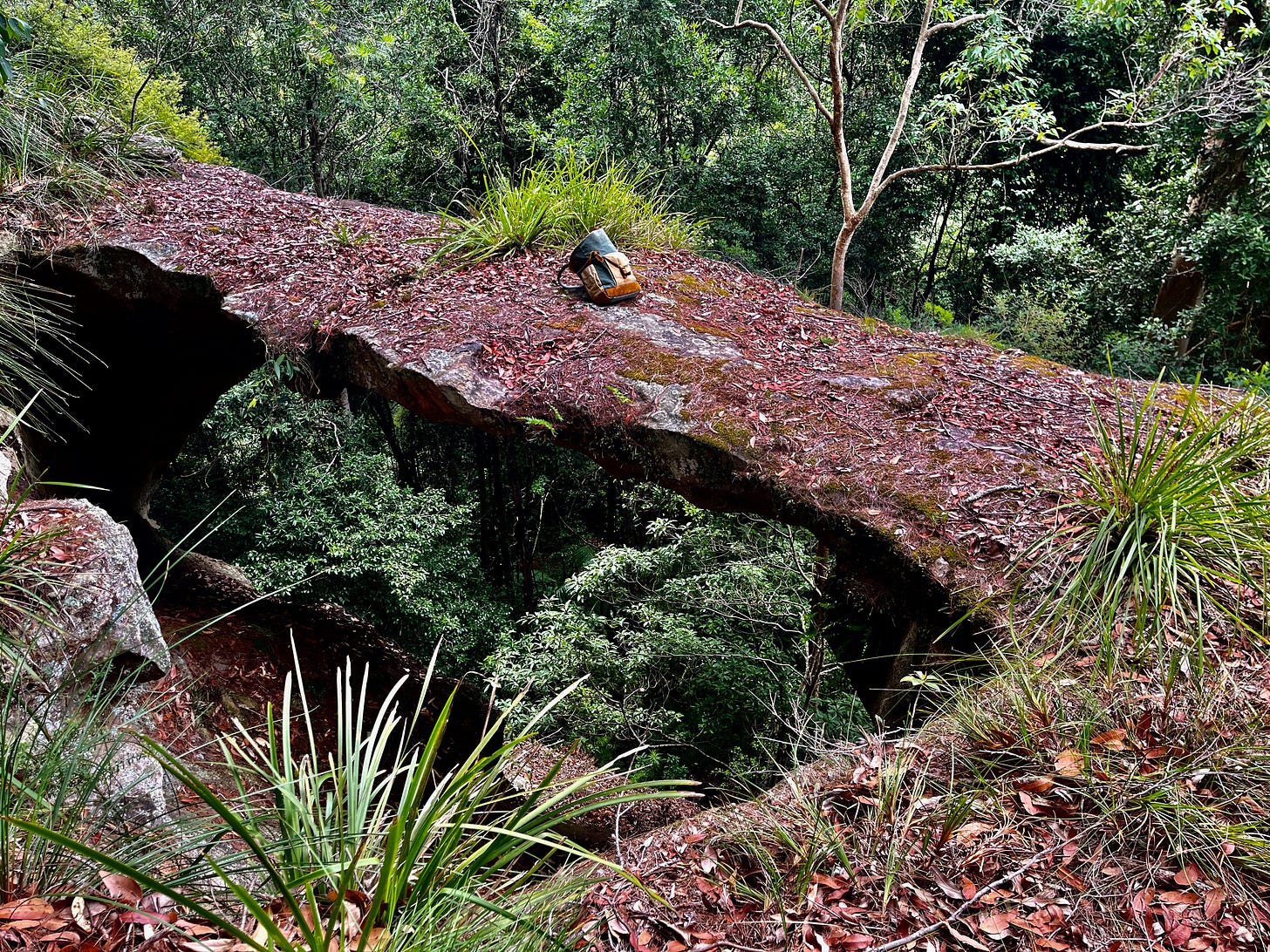 I think of another - far larger natural arch - that I also found with friends in a remote valley of the Wollemi wilderness when I was just 16 or 17. It was a span of around 30 metres and eye poppingly scary to walk across. I did find an old and slightly blurry photo of it recently. That’s me 3rd from the left in the blue T Shirt trying to look cool.