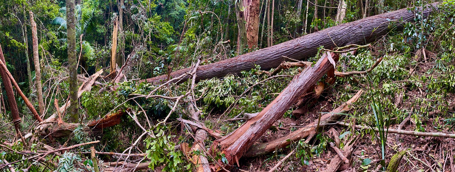 In places, where a storm has felled one of the forest giants, there is only the chaos of death and regeneration and no easy way through - just like life.